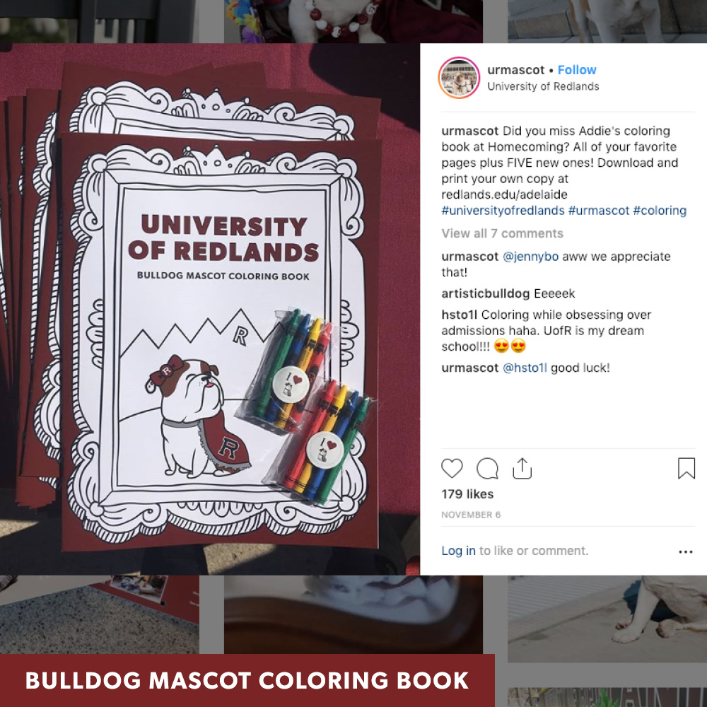 During homecoming, a surprising amount of alumni bring their children to visit. So, we created a mascot coloring book using scenery across the Redland campus, as well as some fun seasonal designs, such as mermaid Addie for summer. Addie also takes the coloring books with her when she travels to local elementary schools, encouraging children to think about college.